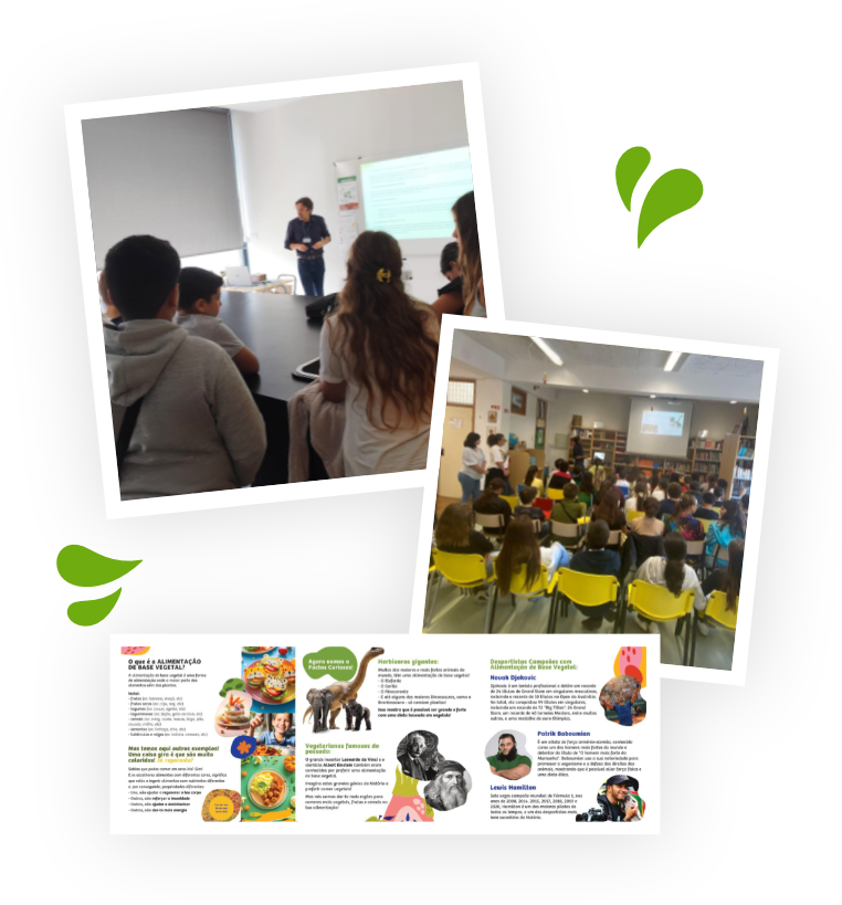 Através de sessões dinâmicas e adaptadas às diferentes idades, alunos e professores são convidados a conhecer os princípios da alimentação de base vegetal, os seus benefícios para a saúde, o ambiente e o bem-estar animal, bem como o impacto positivo das escolhas alimentares no futuro do planeta.